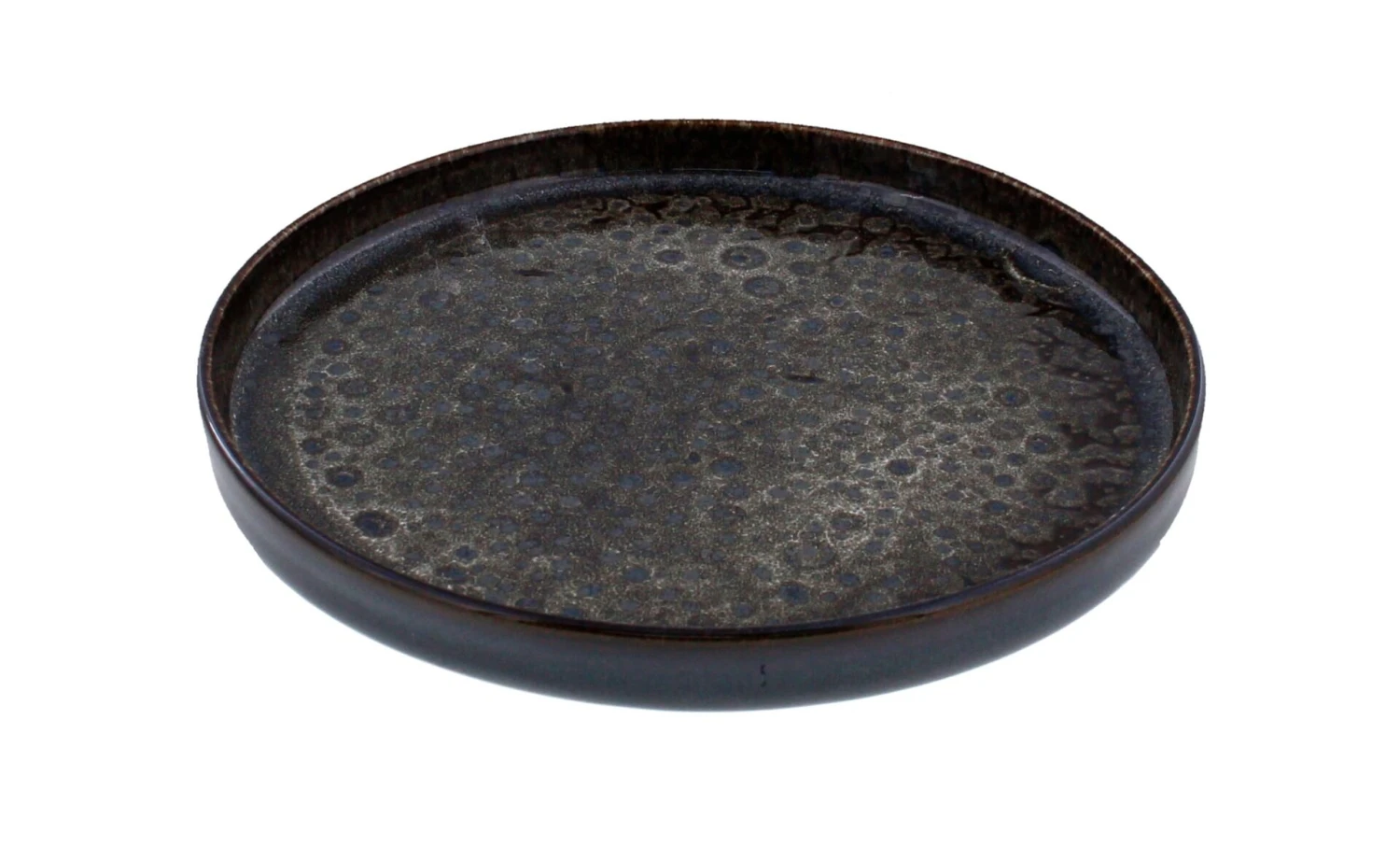 Het Oldenhof 1821 bord Angel is gemaakt van spikkelblauw, geglazuurd aardewerk. Het bord heeft een diameter van 22 cm en heeft een opstaande rand. Gebruik het bord voor het serveren van diverse gerechten.