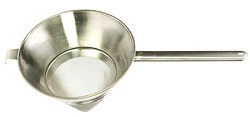 De puntzeef kunt u gebruiken voor het zeven van bijvoorbeeld sauzen. De saus zal door de vorm in een straal in de pan terecht komen. De Oldenhof roestvrijstalen puntzeef is voorzien van een steel en tegengreep. De tegengreep zorgt ervoor dat u de zeef bijvoorbeeld boven een pan kunt hangen tijdens het gebruik.