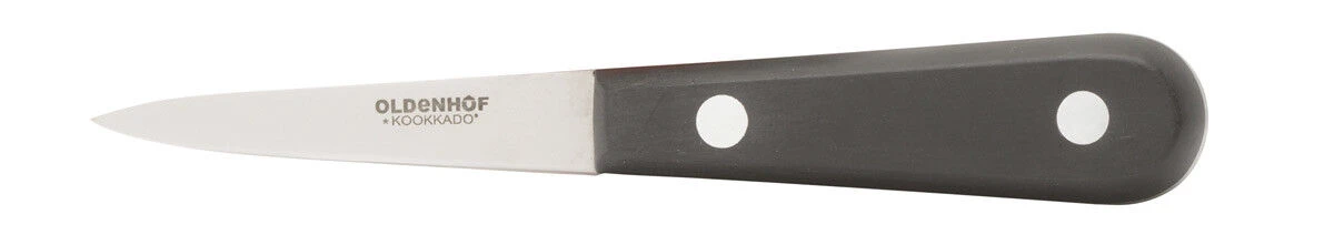 Het lemmet van het Oldenhof oestermes is vervaardigd van messenstaal en is 7 cm lang. Het sterke zwarte kunststof heft is met 2 klinknagels bevestigd en zorgt voor een stevige grip. Het smalle lemmet van het Oldenhof oestermes heeft een stevige punt die u gemakkelijk tussen de schelpen van de oester wrikt.