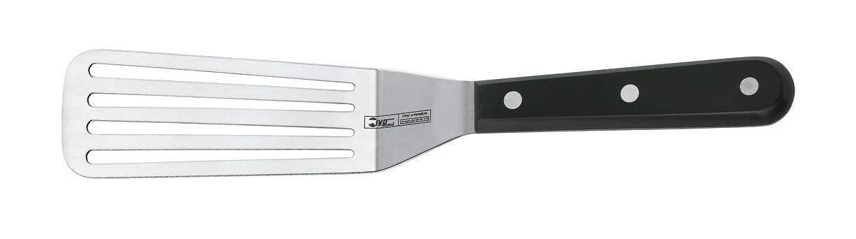 De Oldenhof spatel met sleuven en knik heeft een blad dat 12,5 cm lang is. De spatel is gemaakt van roestvrij staal en heeft een kunststof greep. Gebruik de spatel om kwetsbare producten in de pan te kunnen keren. Door de sleuven kan eventueel overtollig vet weglopen.Â