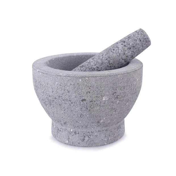 De Oldenhof vijzel is gemaakt van lichtgrijs graniet en heeft een diameter van 17 cm en een hoogte van 15 cm. De vijzel is gemaakt van neutraal graniet met een stamper die goed in de hand ligt. Gebruik de vijzel voor het kleinmaken van allerlei producten.